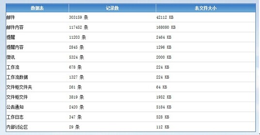 2.OA系统硬盘空间使用情况 3.OA系统主要模块数据统计